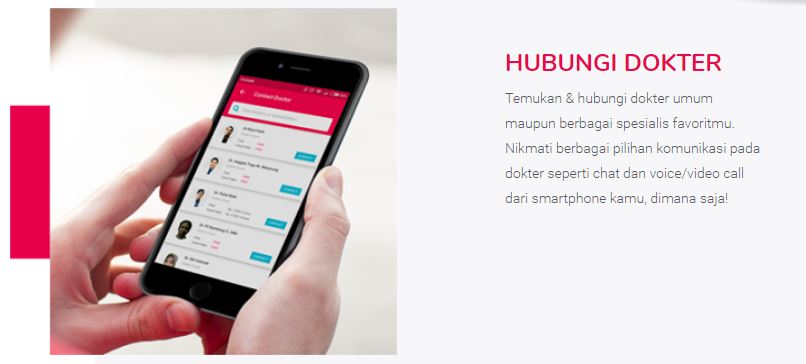 - Hubungi Dokter (Kontak Dokter):Â Layanan yang memfasilitasi para pengguna untuk berinteraksi secara langsung dengan ribuan dokter melaui voice call, video call, atau chatÂ