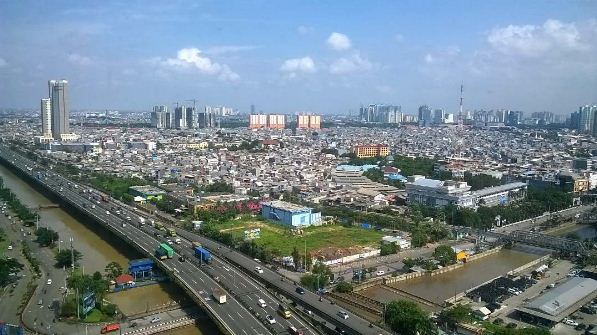 suasana kota Jakarta dari ketinggian. Berada di ketinggian itu merupakan