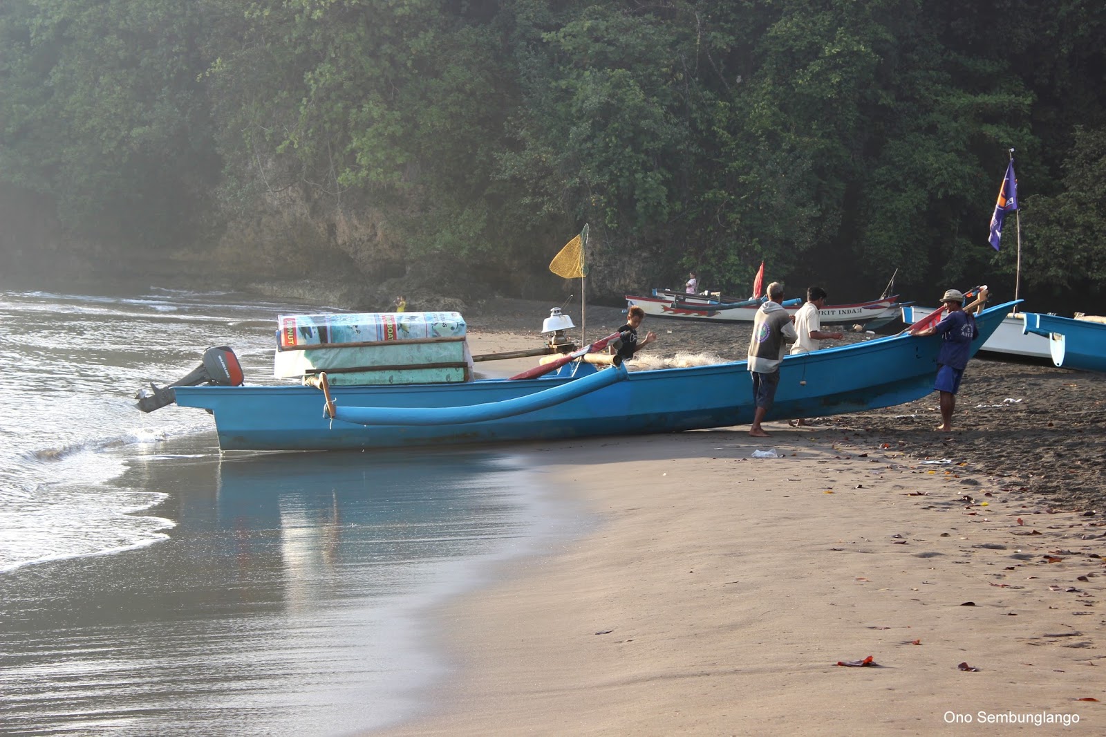 Perjalanan kami teruskan, beberapa rencana perjalanan yang sudah di susun tetap kami lalui bersama. Ketika tiba di Pangandaran sebenarnya istirahat adalah pilihan yang paling utama namun tidak saya lakukan, saya memilih berlama-lama duduk di tepi pantai Batu Karas menikmati senja menjelang malam. Tidak ada Sunset memang namun para nelayan yang pulang dari tengah laut menuju pantai menjadi suasana yang sangat menarik perhatian saya, alhasil jeprat jepret dengan kamera seadanya merekam momen-momen itu. Kemudian pilihan merebahkan tubuh adalah pilihan bijak di saat hari mulai gelap.