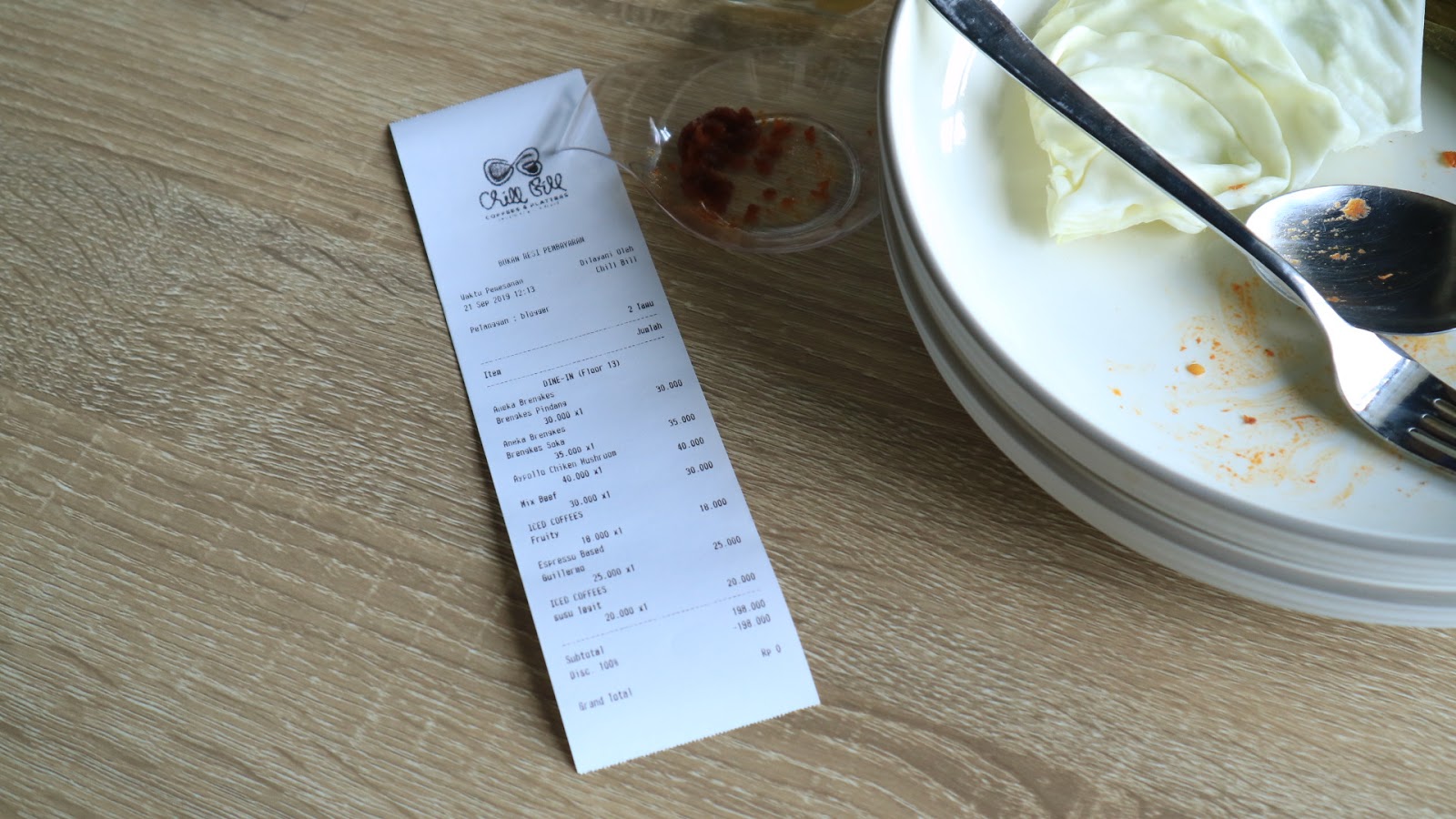 Tapi yang mengejutkan saya mas Putu memberikan semuanya geratis. Struk dan tagihan kasir hanya menjadi pemanis tulisan ini. Silakan berkunjung ke Chill Bill Coffees and Platters. Mungkin pengalamanmu berbeda dari apa yang saya rasakan. Selamat menikmati.